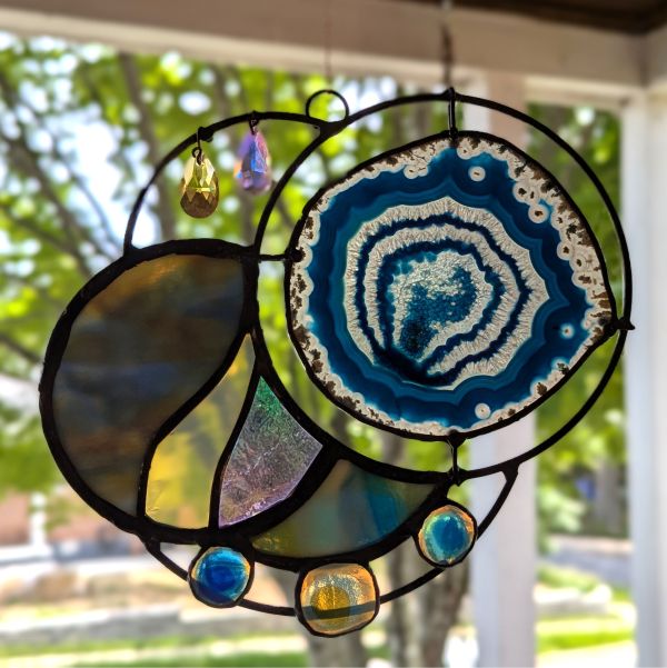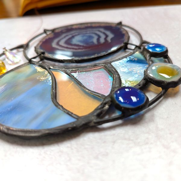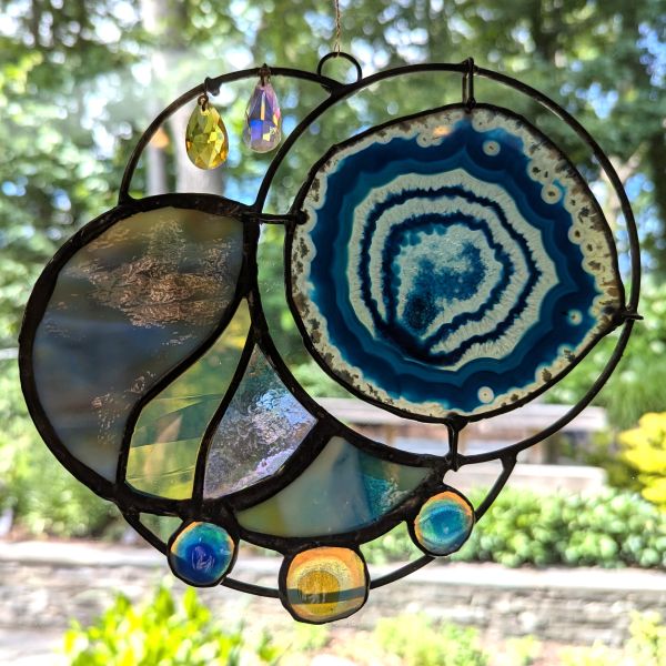 Celestial Stained Glass panel made with handblown and fused glass